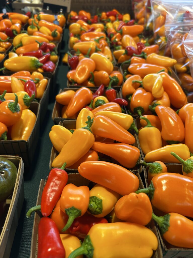 Gorgeous photos! Are those cubanelles? I’m half tempted to get off my ass and go to a farmer’s market this morning, even though I’ve got more than enough produce of my own. I still have a bunch of tomatoes in the garden — they’ve been enormous for weeks but they’re still green. As are most of the trees around here. It’s the most un-fall-like fall I’ve ever seen.