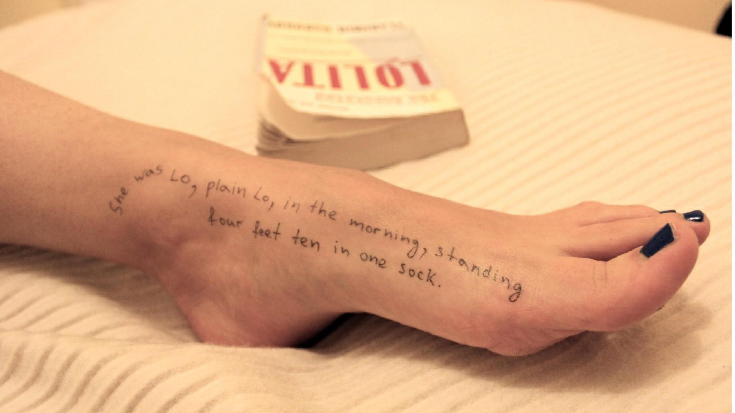 I’m assuming that foot is under 18 years old. Who wrote that line from “Lolita” on it? The owner, another girl, Alan Dershowitz?